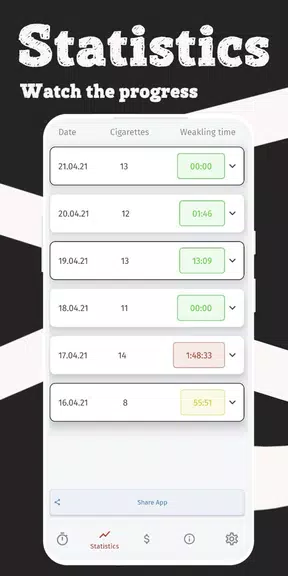 If you're looking to conquer your smoking habit or just cut down on your daily cigarette or vape use, SWay: Quit/Less Smoking Slowly is your go-to app. It's designed to help you gradually increase the intervals between your smoke breaks, fostering self-control and healthier habits. Whether your goal is to become completely smoke-free, reduce your consumption, or simply manage your smoking better, SWay is your steadfast companion on this journey. With its customizable settings and intuitive interface, the app adapts to your unique needs, guiding you towards a healthier, smoke-free future. Download SWay now and take that crucial first step towards a better life.