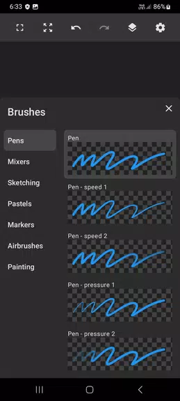 강력한 브러시 도구 : 앱의 눈에 띄는 기능은 다양한 브러시 도구로 다양한 크기와 스타일로 스트로크를 만들 수 있습니다. 스케치, 애니메이션 캐릭터를 색칠하든 추상 예술을 탐구하든,이 도구는 생생한 색상과 세심한 세부 사항으로 창작물을 주입 할 수 있습니다.