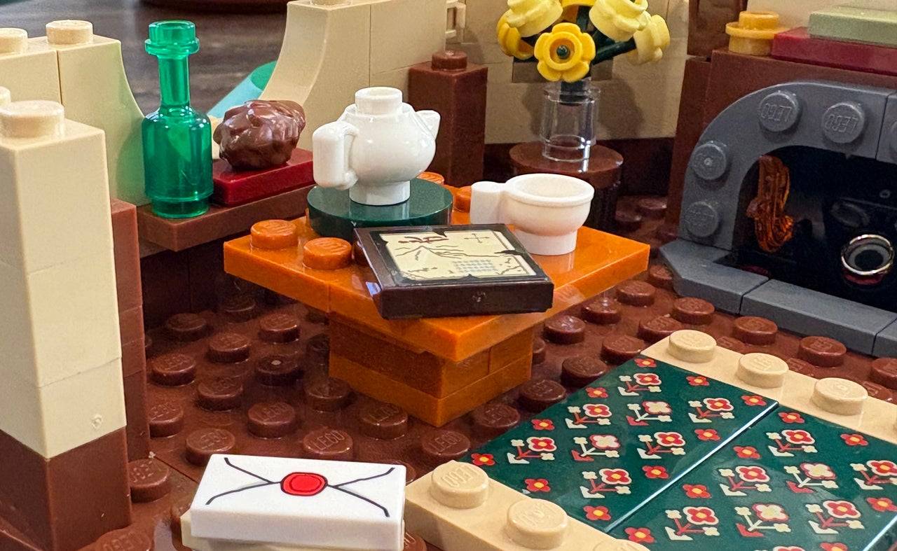 O conjunto faz referência inteligente às aventuras de Bilbo através de tesouros escondidos: a futura Cota de Mithril de Frodo no baú da entrada, o mapa desgastado de Thorin perto do bule e Ferroada descansando em um porta-guarda-chuvas ao lado de um guarda-sol de hobbit.