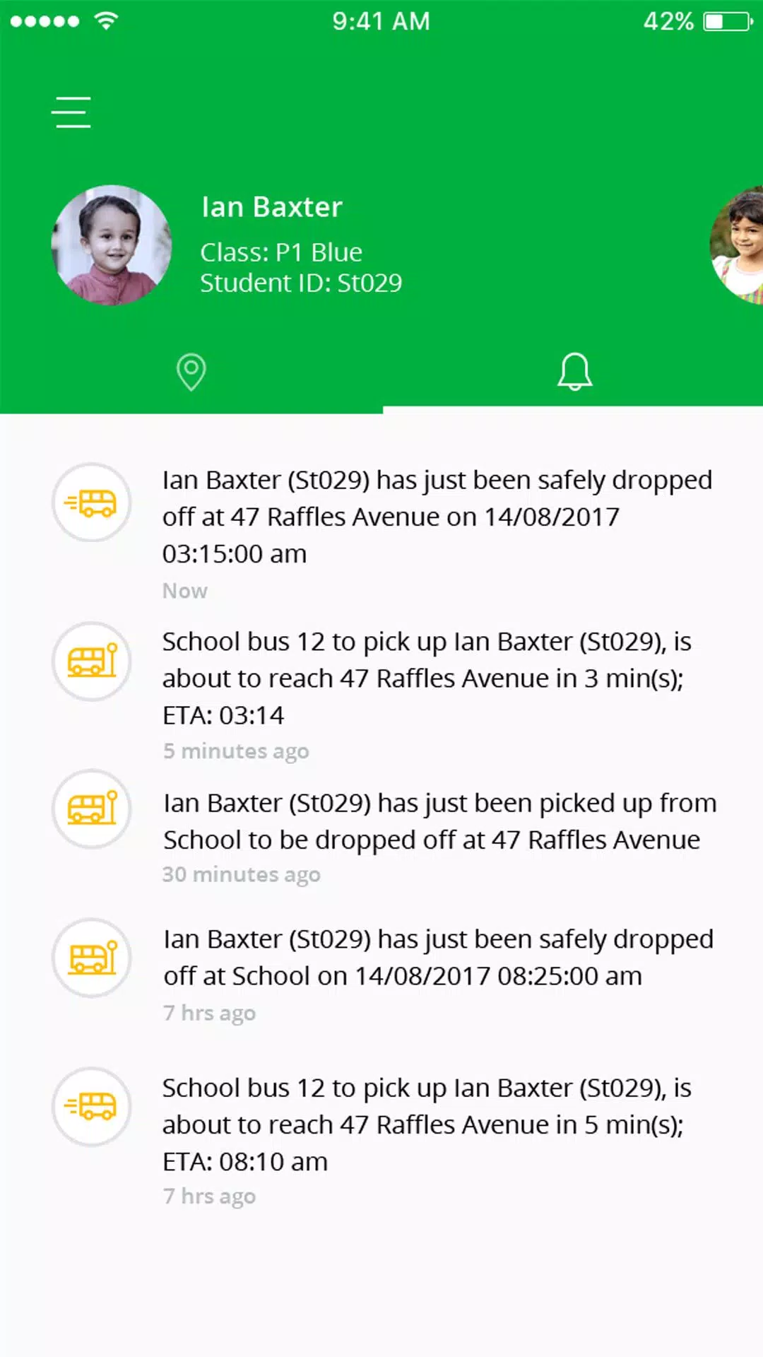 - Confirmation when a student is picked up or dropped off.